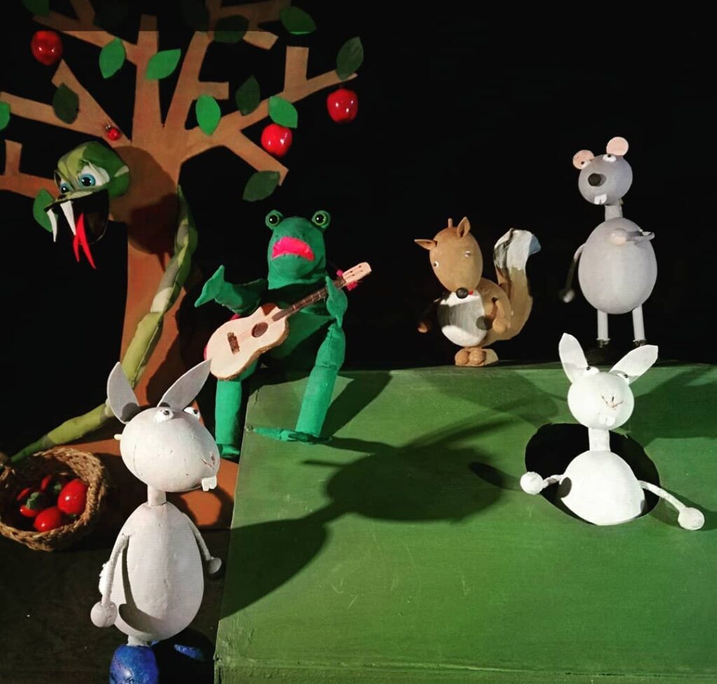 La música tiene también una parte presencial, unas canciones acompañadas del ukelele y otros sonidos con instrumentos sencillos de percusión.
